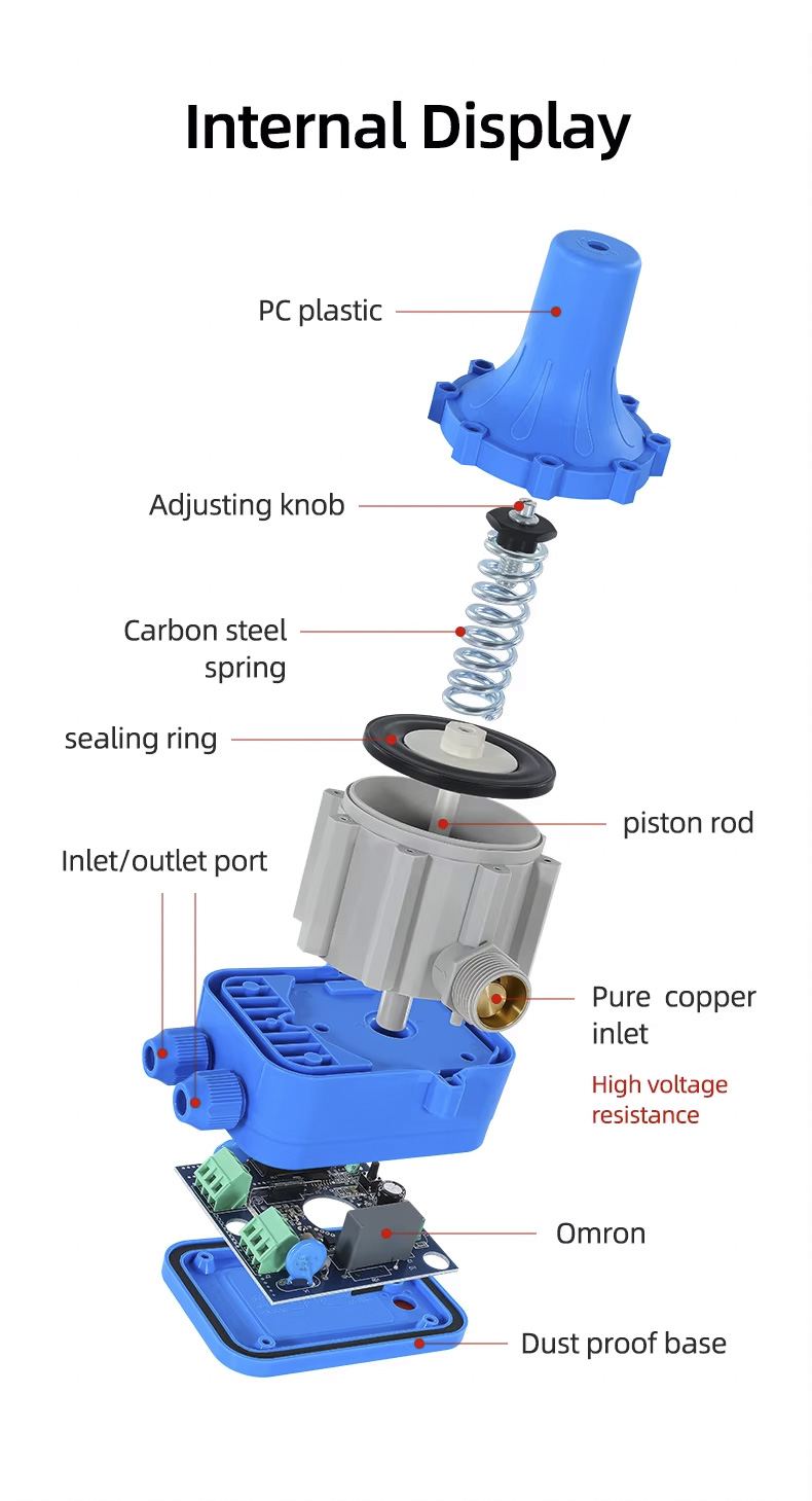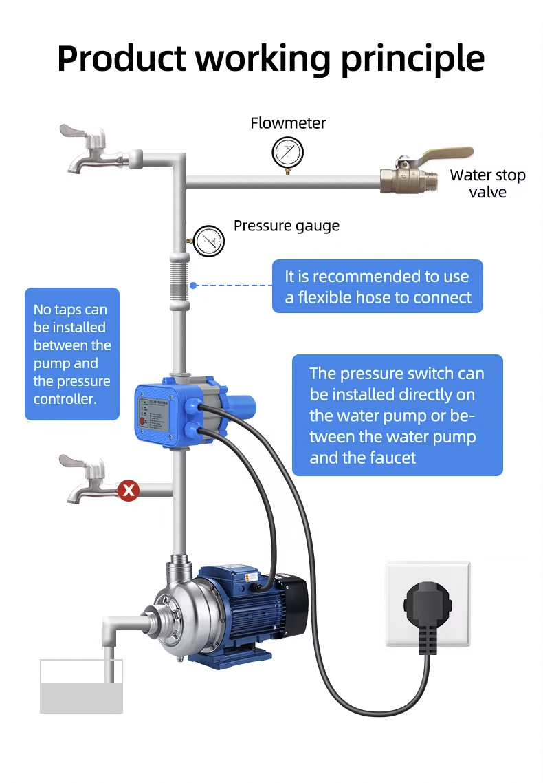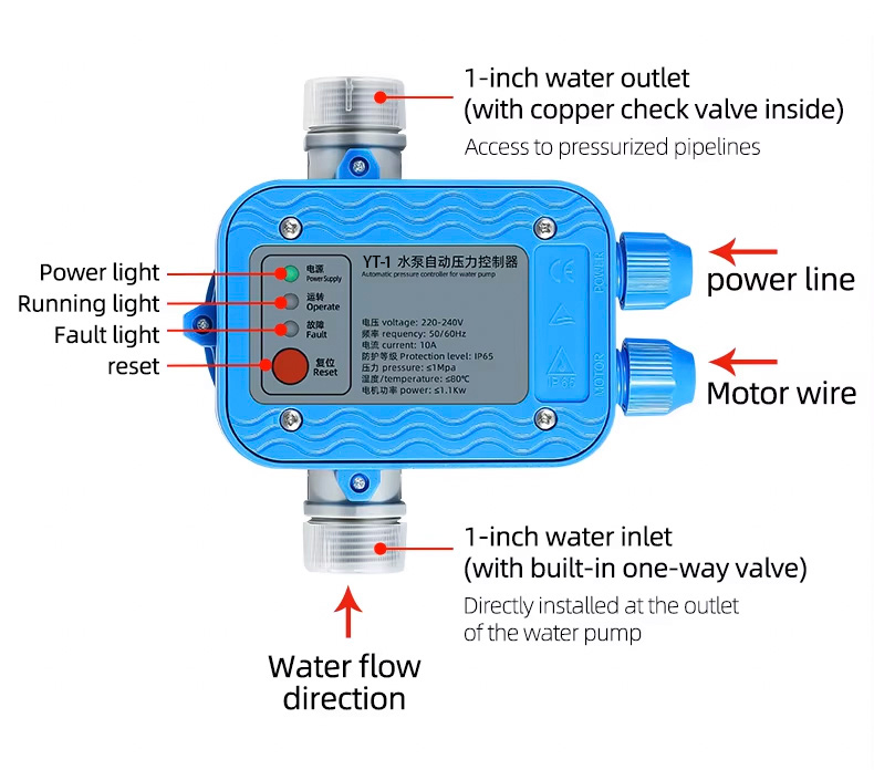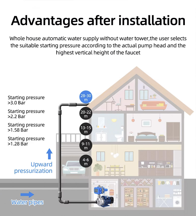 جهاز التحكم التلقائي في المضخة يمكن لجهاز التحكم بالضغط الإلكتروني لمضخة المياه أن يحل محل التركيبات المعقدة لمضخة المياه الأوتوماتيكية. إنه يتميز بالأداء المستقر، الصيانة المنخفضة والعمر الطويل.