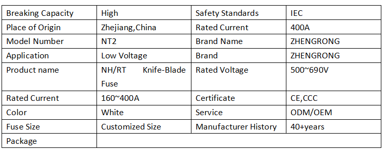 ZHENGRONG NT2 315A 500V تُستخدم الصمامات الخزفية المربعة بشكل شائع في المعدات الكهربائية الصناعية وأنظمة الطاقة والمعدات الإلكترونية لحماية الدوائر من الأحمال الزائدة والدوائر القصيرة.